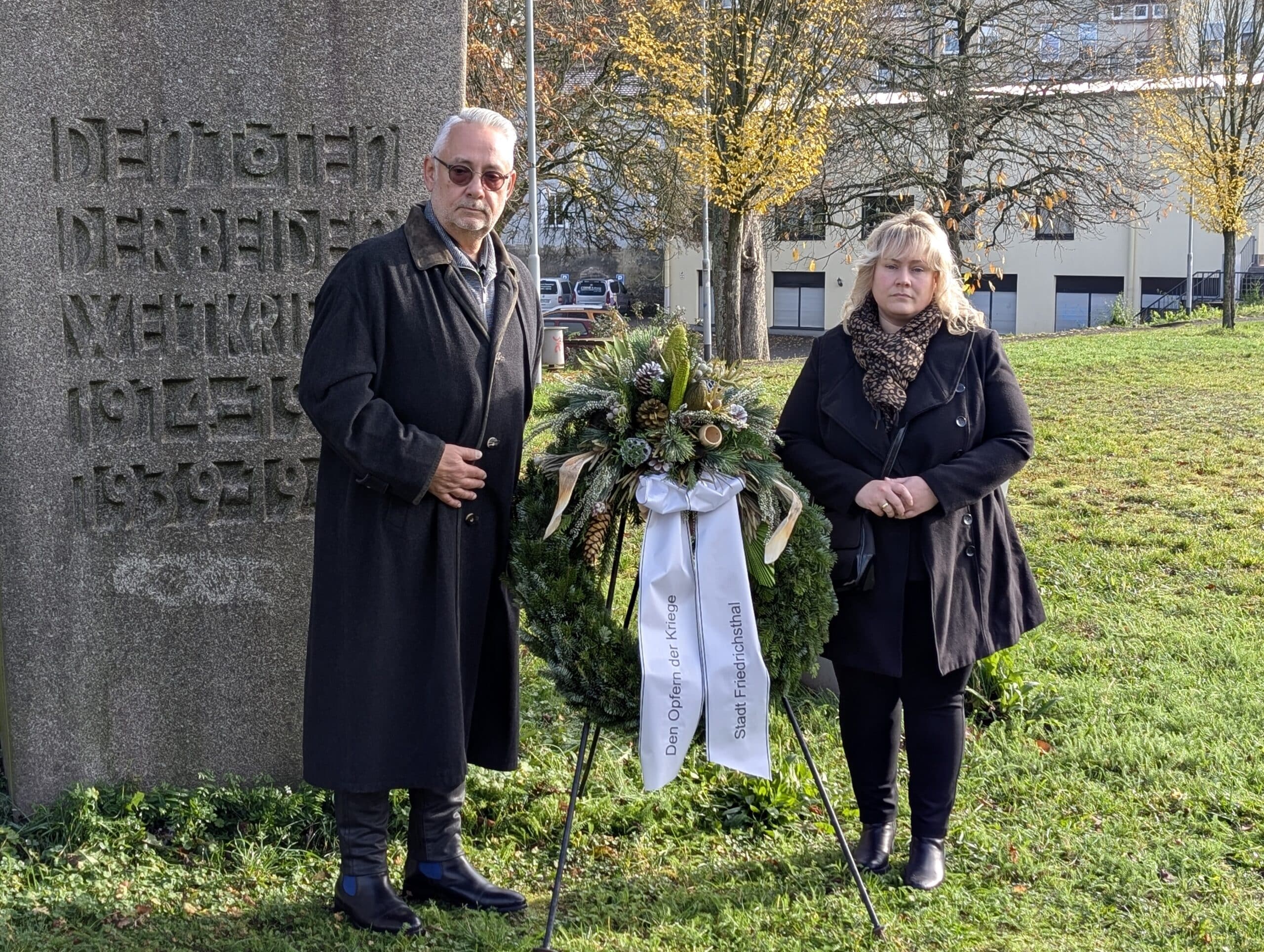 Am Sonntag, 16. November 2025, fand am Mahnmal in der Bismarckstraße die städtische Gedenkfeier zum Volkstrauertag statt.