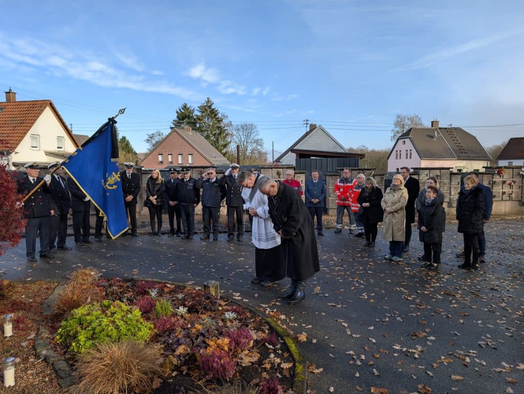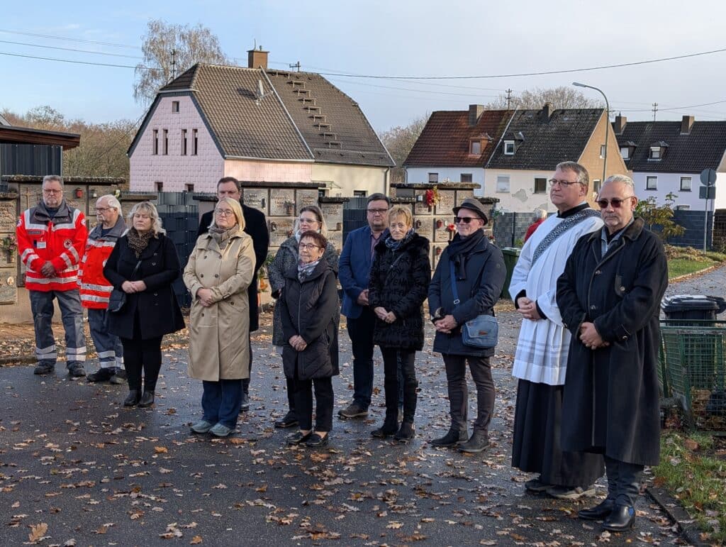 Unter den Teilnehmenden waren auch die Erste Beigeordnete Jacqueline Reimann-Jung, der Beigeordnete Peter Bickelmann sowie MdL Anja Wagner-Scheid, die das Gedenken mit ihrer Anwesenheit unterstützten. Diakon Gerd Fehrenbach leitete das Friedensgebet und setzte damit einen würdevollen Akzent im Rahmen der Gedenkfeier.